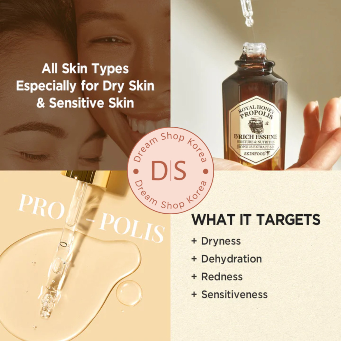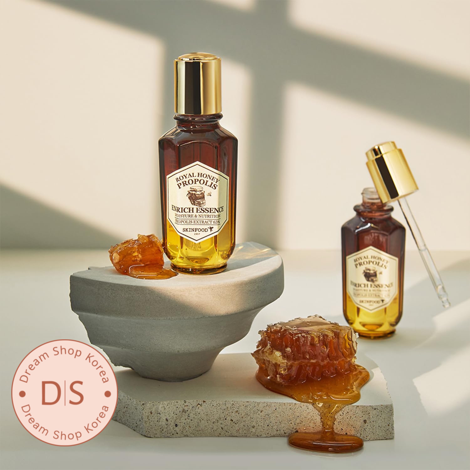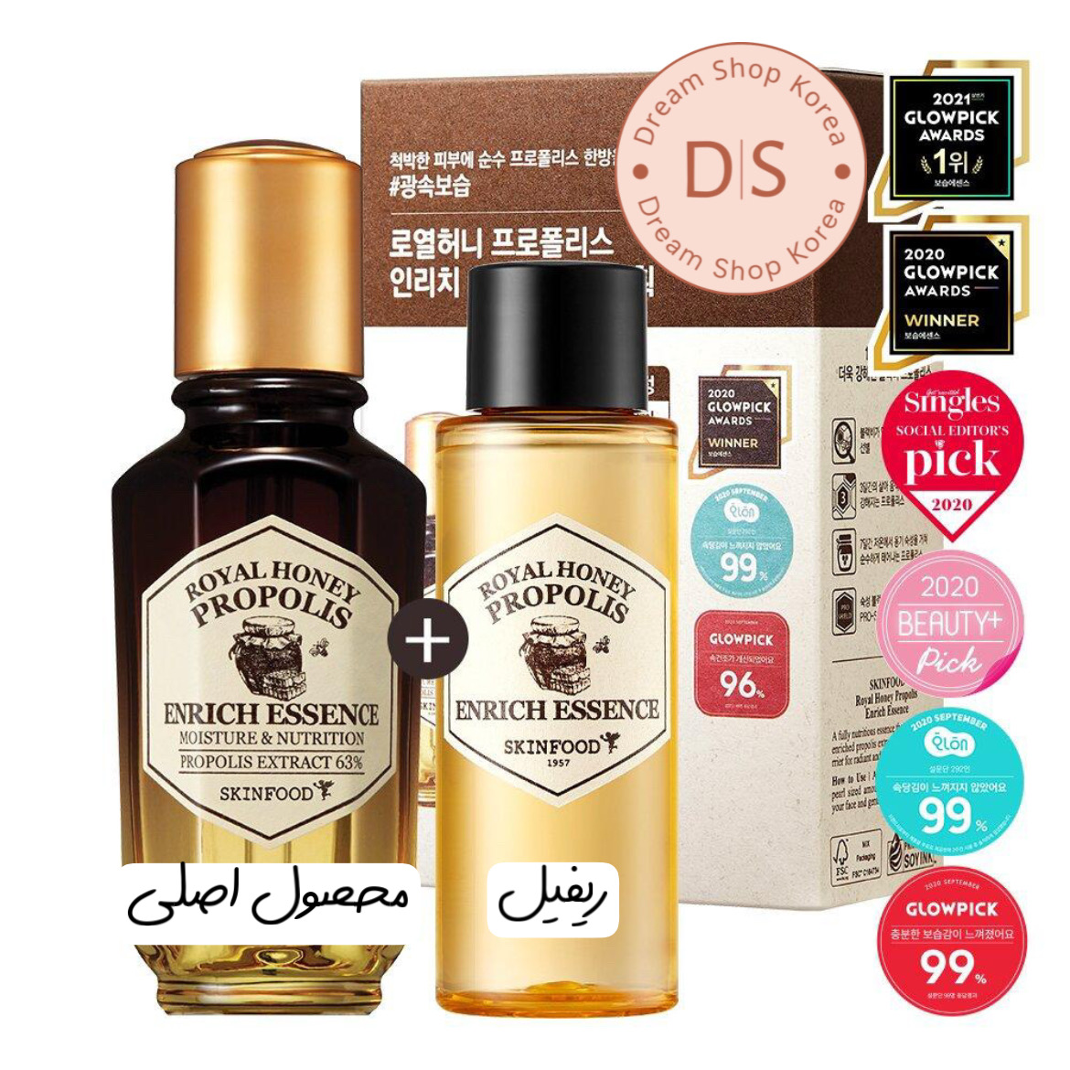 اسنس عسل پروپولیس رویال از Skinfood انتخابی عالی برای کسانی است که به دنبال تغذیه و تقویت پوستشان هستند. این محصول حاوی 63 درصد عصاره پروپولیس است که خاصیت ضدباکتری و ترمیمکنندگی فوقالعادهای داره. همچنین 10 درصد عصاره ژل رویال و 10 درصد عسل طبیعی هم توی ترکیباتش هست که هر کدوم به نوبهی خودشون به رطوبترسانی و نرمکنندگی پوست کمک میکنن 🐝🍯اگر پوست خشکی دارین یا احساس میکنید شادابی و طراوت قبلی رو نداره، این اسنس میتونه انتخاب خیلی مناسبی باشه. استفادهی مداوم از این محصول به مرور باعث تقویت سد محافظتی پوست میشه و در برابر آسیبهای محیطی مقاومترش میکنه. در نهایت، پوستی نرمتر، شفافتر و با درخشش طبیعی خواهید داشت که حس تازگی و سرزندگی بهتون میده 🌸✨این اسنس برای انواع پوست مناسبه، ولی بهویژه اگه پوست حساس یا خشک دارین، توصیه میکنیم حتما امتحانش کنید تا تاثیرش رو از نزدیک ببینید. 💛💛این محصول ست هست و جدا ارسال میشه، در نتیجه بدون جعبه هست🧡🧡